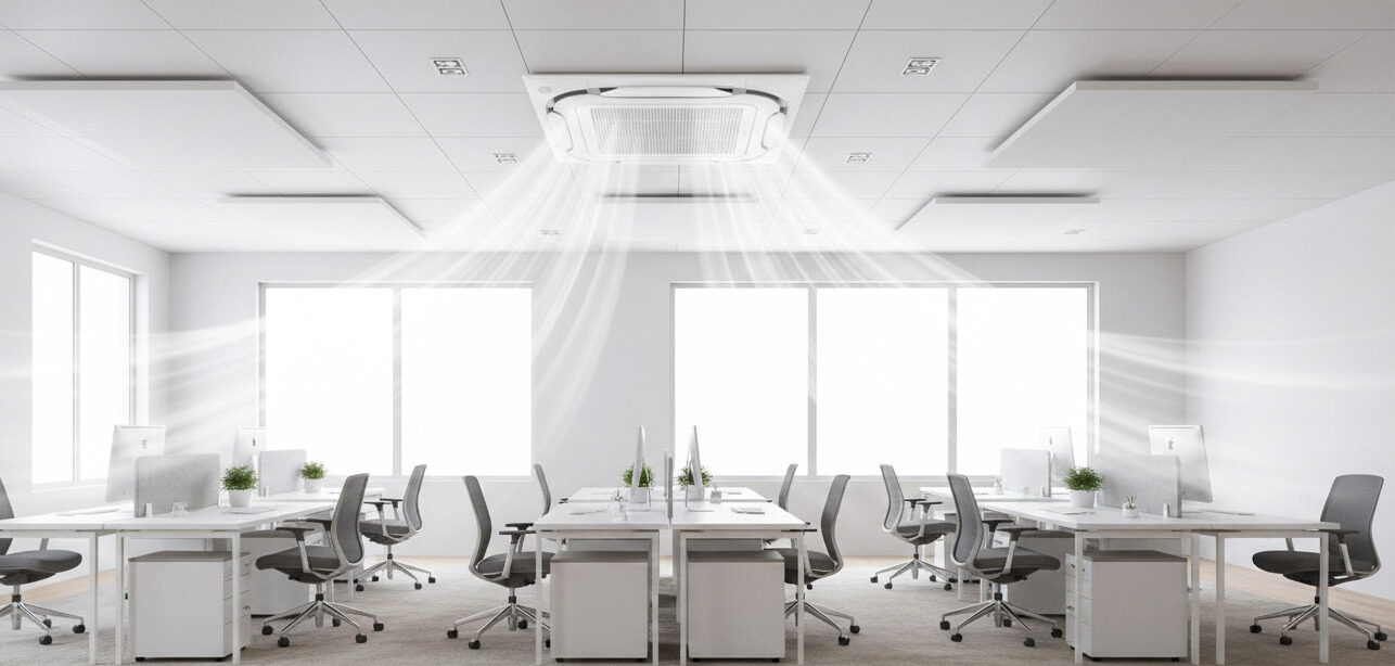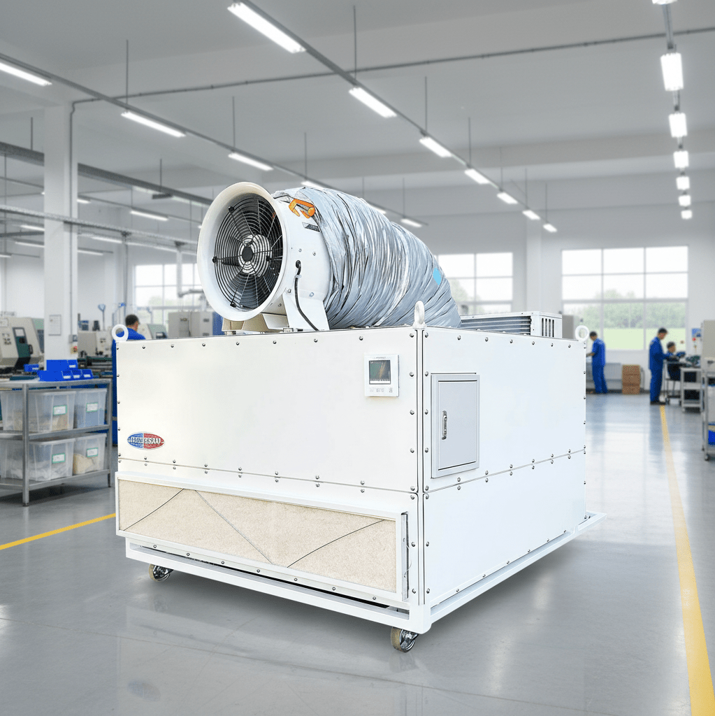 夏は冷風、冬は温風。一台二役のスポット空調で、年中快適な現場環境を。